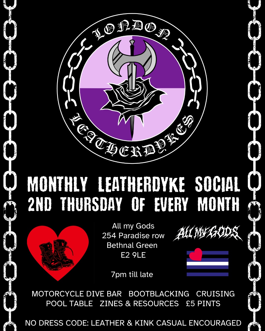 Monthly leatherdyke social hosted by London Leatherdykes